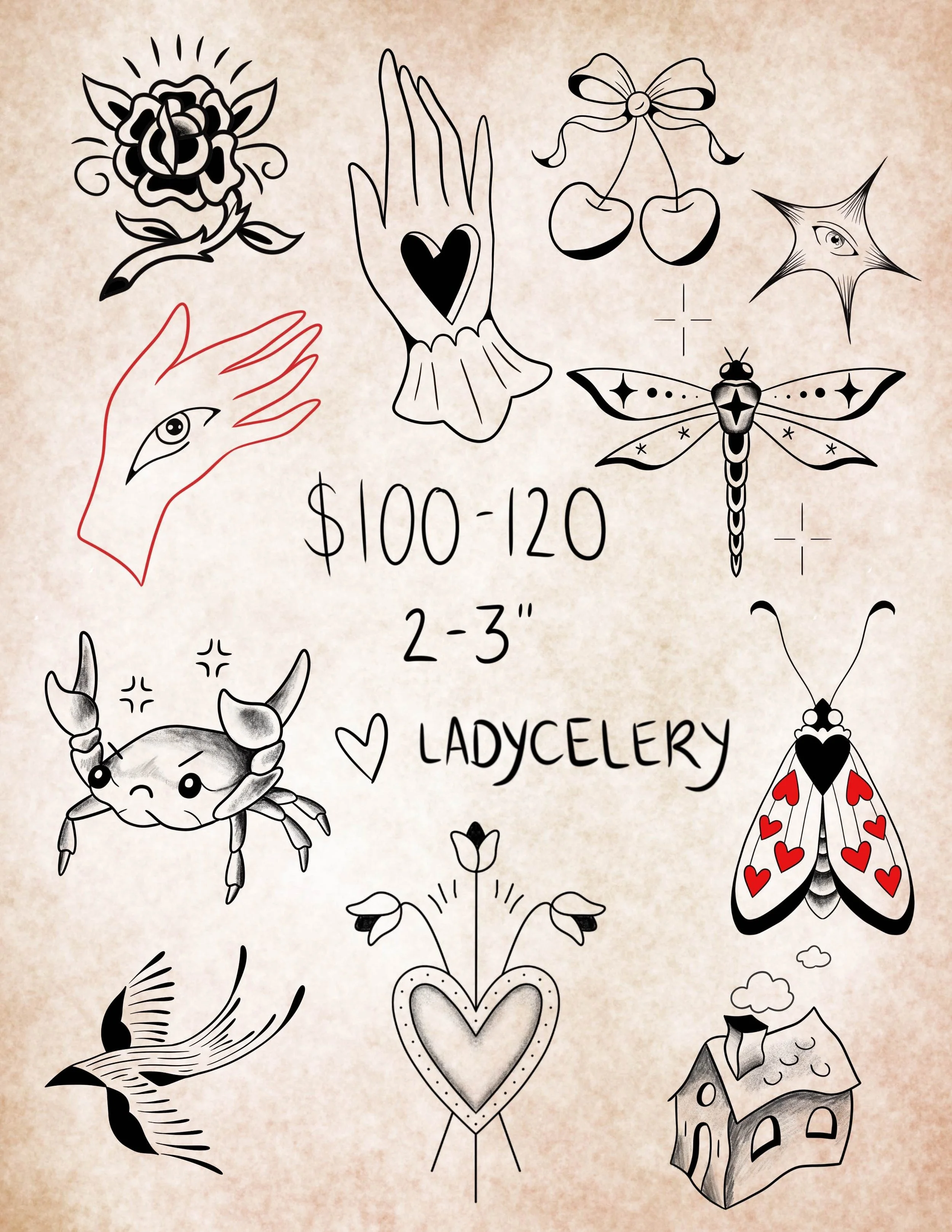 You can contact me through my Instagram and view my latest work and flash sheets: @ladycelery